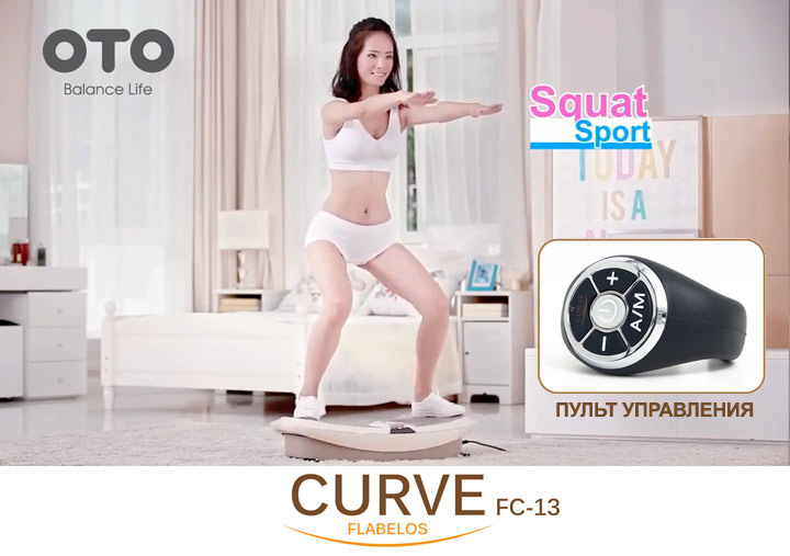 Эффективнее воздействие, заметнее результат Встречайте последние инновации для домашних фитнес тренировок, воплощенные в конструкции вибрационной платформы OTO FLABéLOS CURVE. Новая версия популярной вибрационной платформы FLABéLOS предназначена для эффективной проработки всех групп мышц в максимально сжатые сроки! Время тренировки меньше, результат лучше! Как показала практика, для проведения стандартных упражнений на новой вибрационной платформе FLABéLOS CURVE требуется в 4 - 5 раз меньше времени для получения результата и достаточной нагрузки на мышцы! При ежедневных домашних тренировках в течение 20 - 30 минут пользователь получает физическую нагрузку, аналогичную занятиям полутора часовой тренировки в тренажерном зале! Вибрационная платформа OTO FLABéLOS CURVE - универсальный тренажер для домашних занятий Спортивный тренажер FLABéLOS CURVE наделен профессиональными возможностями, которые помогают активно поддерживать спортивную форму и здоровый образ жизни. С помощью упражнений, выполняемых на виброплатформе FLABéLOS в течение 20 - 30 минут, реализуется нагрузка полуторачасовой спортивной тренировки. Эффективность тренажера в воздействии низкочастотных перемещений вибрационной платформы, что приводит к генерации мышечных сокращений. При этом эффективность работы мышц повышается в 4 - 5 раз. Этот способ тренировки является эффективным методом поддержания спортивной формы для современных людей, которые по причине занятости не могут уделять много времени на длительные тренировки в спортивном зале. Что общего и в чем отличие нового поколения тренажера FLABéLOS CURVE от предыдущих? Вибрационная платформа OTO FLABéLOS CURVE применяет запатентованную технологию полной вибрации тела WBV, которая основана на индуцированной коррекции дисбаланса наклона платформы. При ощущении дисбаланса тела центральной нервной системой активируется сигнал в мозг, который дает команду на рефлекторное сохранение исходного состояния, что приводит к значительному сокращению мышц для поддержания данного баланса равновесия. Тренажер FLABéLOS CURVE предназначен для выполнения различных упражнений с улучшенной эффективностью, что позволяет максимально быстро использовать все его функциональные возможности. В отличие от предыдущего поколения, виброплатформа OTO FLABéLOS CURVE имеет более современный дизайн, однако, не имеет ручки поддержки с поручнями. Также площадь опоры старшего поколения тренажеров OTO FLABéLOS WBV-3000 больше чем у FLABéLOS CURVE, поэтому новая виброплатформа не рекомендована людям с проблемами удержания равновесия.