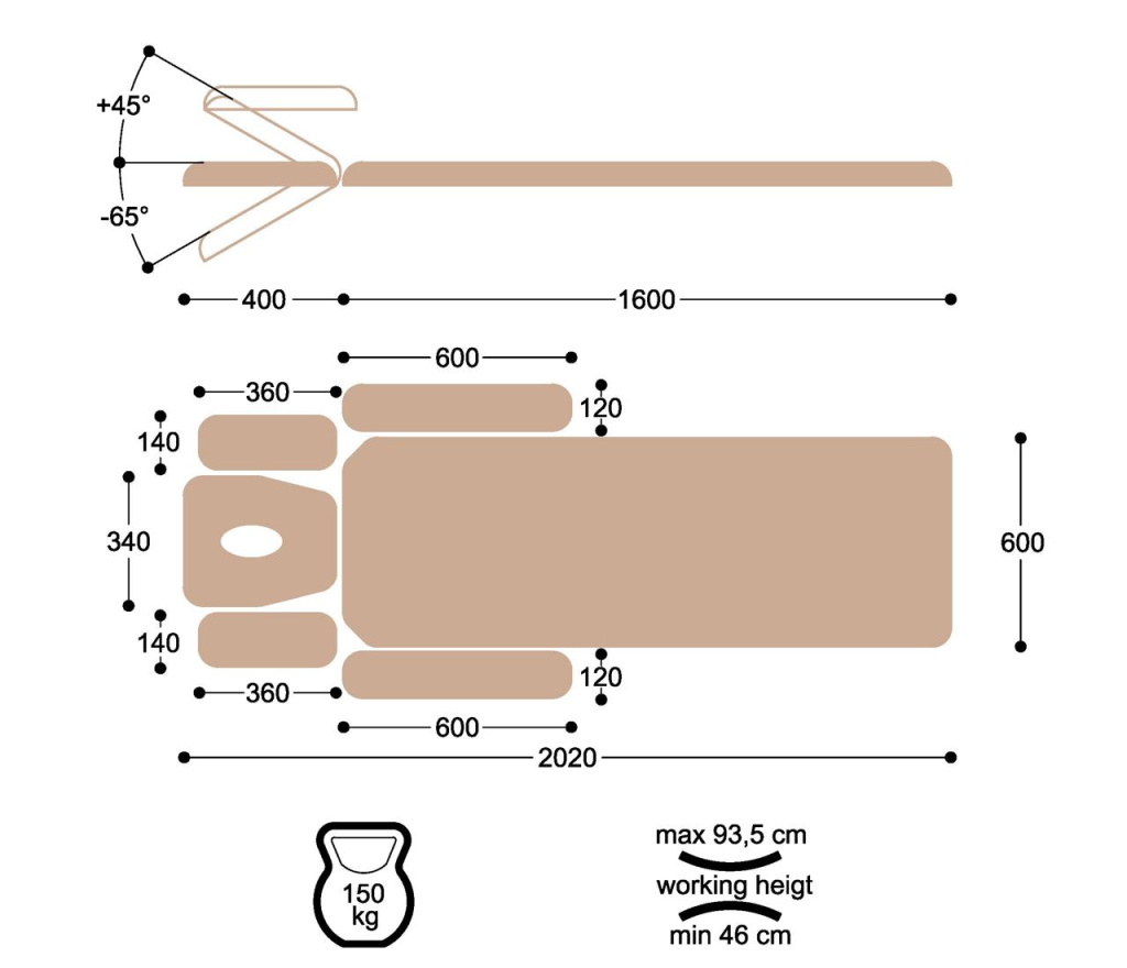 Электроприводом, плавно регулирующим высоту ложа стола. Бесступенчато регулируемыми передними подлокотниками. Боковыми поддержками для рук, с механизмом фиксации. Регулировкой угла наклона лицевой части. Дополнительным положением подголовника для массажа воротниковой зоны шеи. Регулирующимися ножками для компенсации неровностей пола. Нагрузка на стол до 150кг. Размеры люверса: 18*11 см (Д;Ш). Покрытие стола кожей Skaden - бежевый Рама стола выполнена в сером цвете Гарантия на массажный стол — 2 года. Декларация о соответствии.